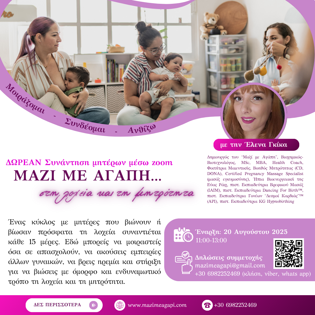Οι δωρεάν συναντήσεις “Μαζί με Αγάπη… στη λοχεία και τη μητρότητα” δημιουργήθηκαν για να προσφέρουν έναν ασφαλή, ζεστό και υποστηρικτικό χώρο...